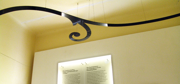 TechnikBei der Umsetzung der Ausstellung durch Viennaprint gelangten folgende Produktionsarten zur Anwendung:1. spiegelverkehrter Druck auf glasklare Klebefolie, aufkaschiert auf Acrylplatten damit produzieren wir Hinterglasbeschriftungen, die sehr edel wirken und fast schwebend wirken. 2. Druck auf blickdichtem Polyesterfilm, mit Glaskleber hinterglaskaschiert damit haben wir hochwertige Hinterglasbeschriftungen, aber der Hintergrund ist abgedeckt. Zum Beispiel bei den Vitrinen - die innen beleuchtet sind, damit man die Briefe und Objekte gut lesen kann - haben wir das wie ein Passepartout verwendet. 3. Folienschnitt, in positiver als auch in negativer Ausführung Bei den Fenstern wurde die negative Variante verwendet, alles ist schwarz abgedeckt nur die Schrift ist frei und lässt Licht in den Raum. Damit das Licht nicht zu sehr blendet, wurde noch mit einer Ätzglasfolie der Effekt gedämpft. 4. Digitaldruck auf Klebefolie, matt schutzfoliert, auf 1mm Polysytrol Objektbeschriftungen lassen sich so perfekt umsetzen. Die Polystyrolkärtchen haben wir noch auf ein kleineres, 5mm starkes Trägermaterial geklebt. Damit schwebt die Objektbeschriftung mit 5mm Distanz zur Wand, ohne dass man eine Befestigung sichtbar ist. 5. Digitaldruck auf Plakatpapier Die Wände der Hörstation wurden damit tapeziert, einfache Anbringung und günstige Kosten bei toller Wirkung. 6. Digitaldruck auf Backlit-Film Dies entspricht einem Durotrans, also einem Groß-Dia. Sieht hinterleuchtet perfekt aus, Qualitätsmerkmale sind ein tiefes Schwarz (das auch im Durchlicht noch immer dicht ist). Kleine Details wie winzige Schriften müssen kantenscharf dargestellt werden.